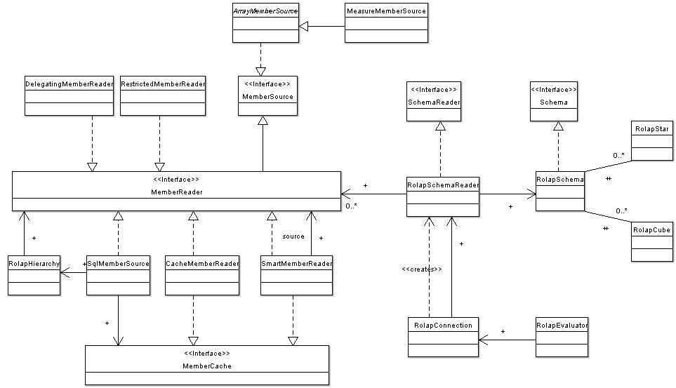 uses the RolapSchemaReader which delegates most calls to one